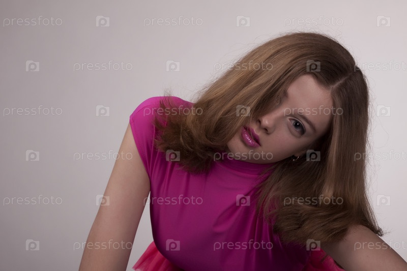 Светловолосая девушка на сером фоне