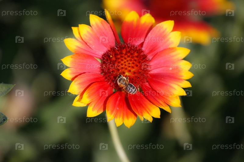 Пчела сидит на красной гайлардии