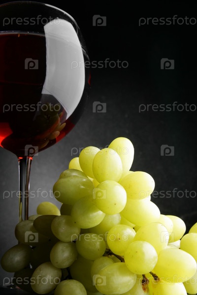 Бокал красного вина и виноград