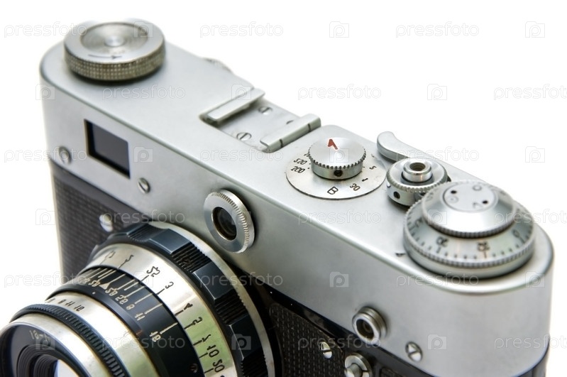 Фотоаппарат крупным планом на белом фоне