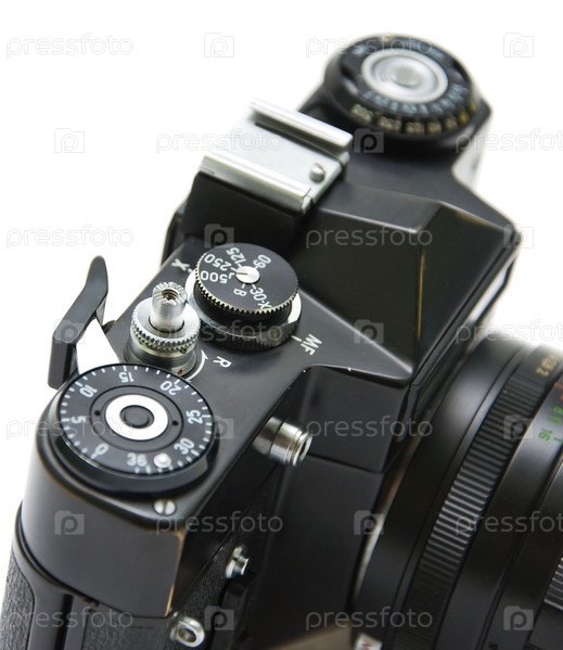 Фотоаппарат крупным планом на белом фоне