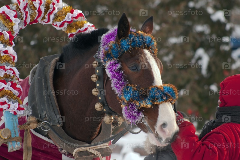 Украшенная гирляндами лошадь