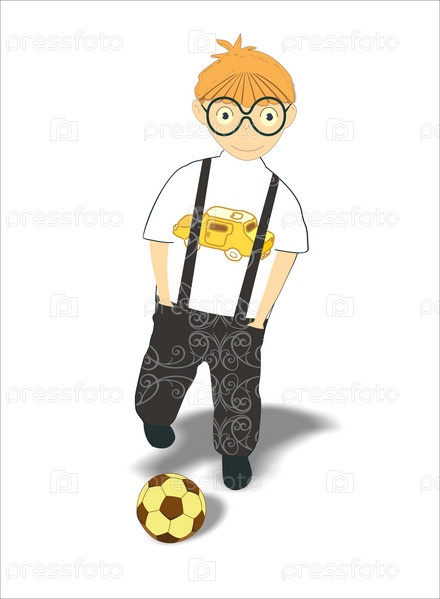 Нарисованный мальчик с футбольным мячом на белом фоне