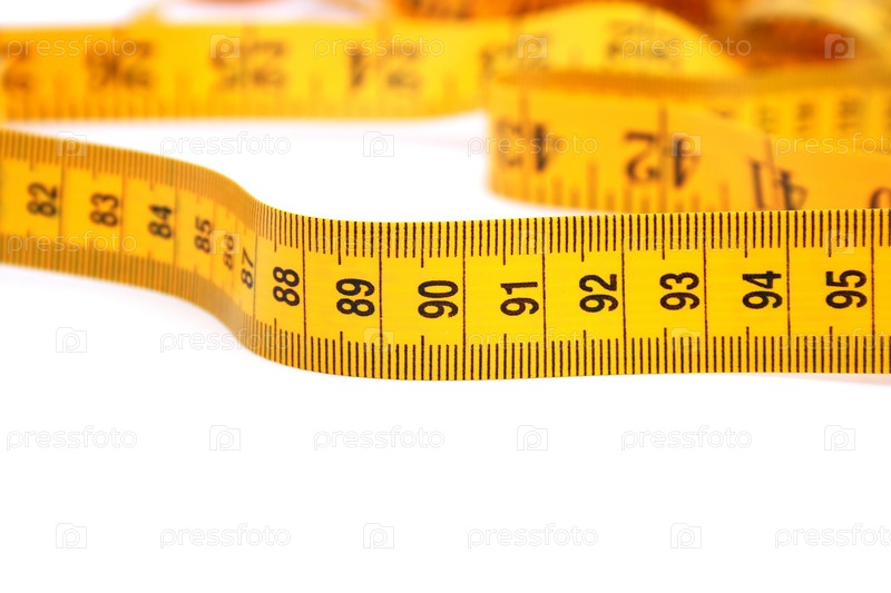 Желтая сантиметровая лента на белом фоне