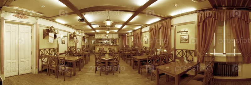 Роскошный зал ресторана, панорамный вид