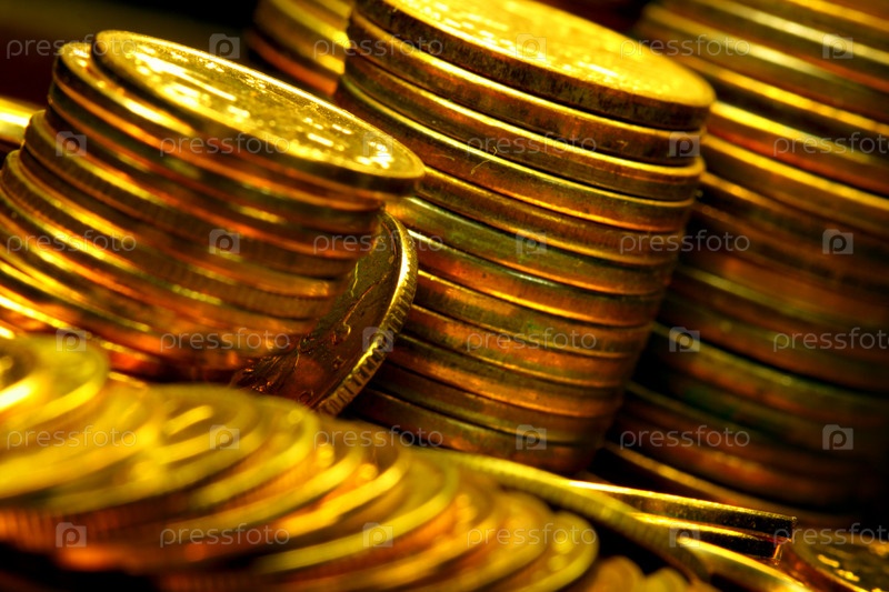 Стопки золотых монет крупным планом