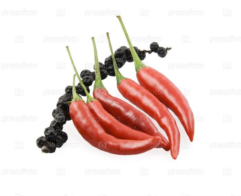 Чили с красным перцем и черный перец на ветке