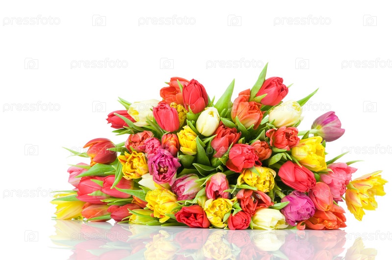 Большой букет из разноцветных тюльпанов
