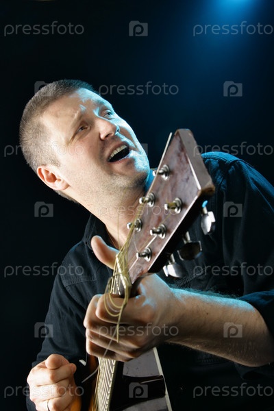Музыкант поет и играет на гитаре