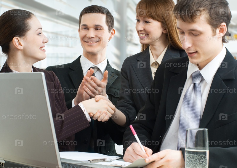 Команда успешных улыбающихся молодых бизнесменов