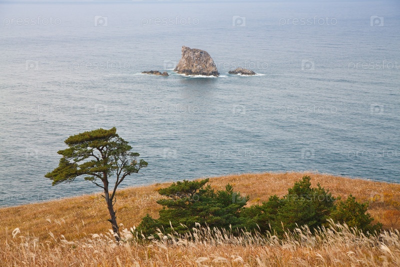 Хвойные деревья на морском побережье