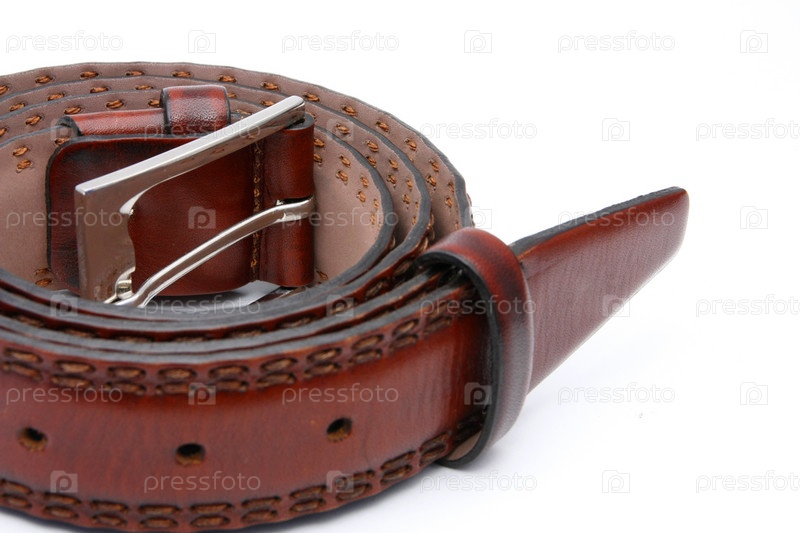 Коричневый кожаный ремень на белом фоне