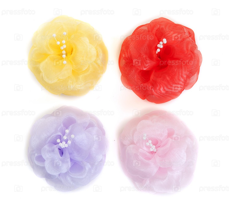 Четыре текстильных цветка на белом фоне