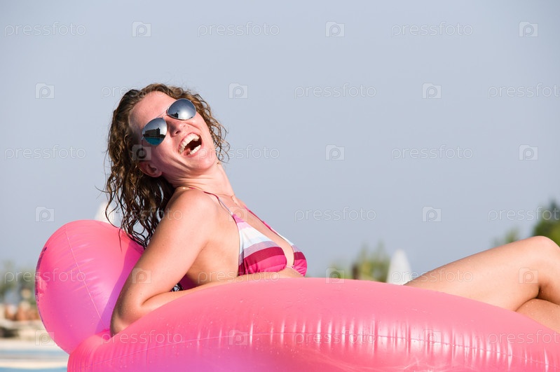 Радостная женщина на надувном круге