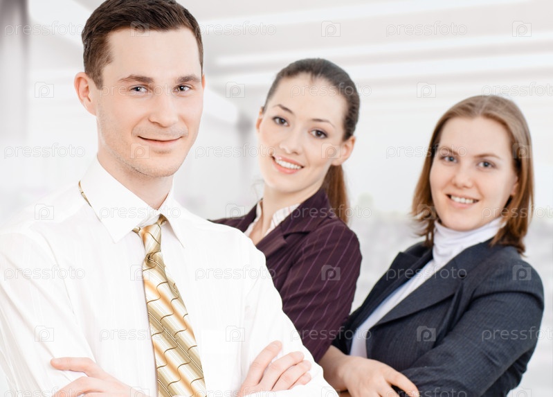 Команда успешных улыбающихся молодых бизнесменов