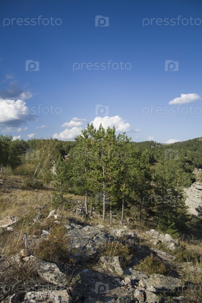 Сосны на горах и синее небо