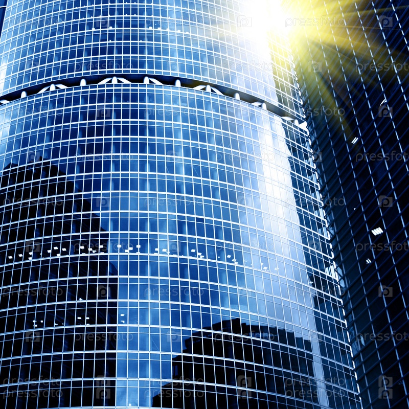 Стена современного небоскреба с солнечным бликом