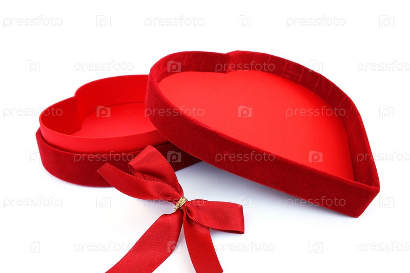 Красная подарочная коробка в форме сердца и лента, изолированные на белом фоне