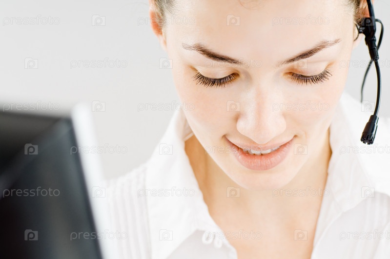 Женщина-бизнесменка красоты, которая носит гарнитуру