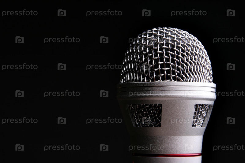 Микрофон крупным планом на черном фоне