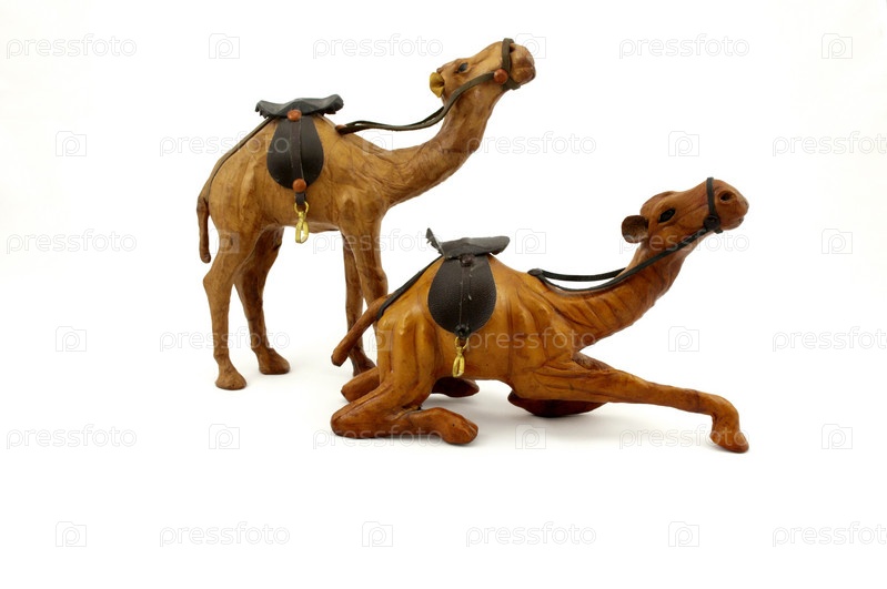 Две фигурки верблюдов на белом фоне