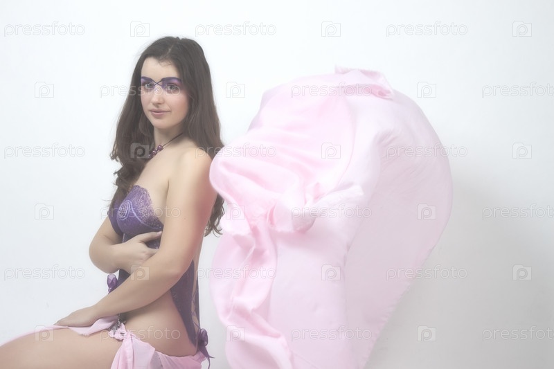 Красивая молодая брюнетка на белом фоне