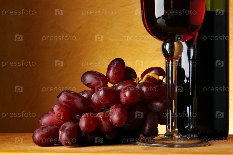 Натюрморт с виноградом и красным вином