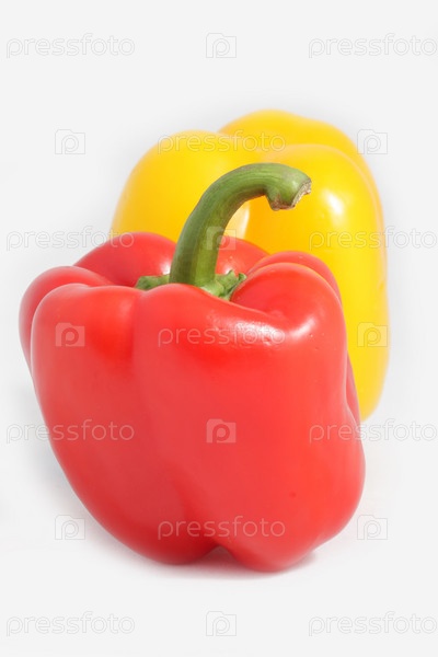 Красный и желтый перцы на белом фоне
