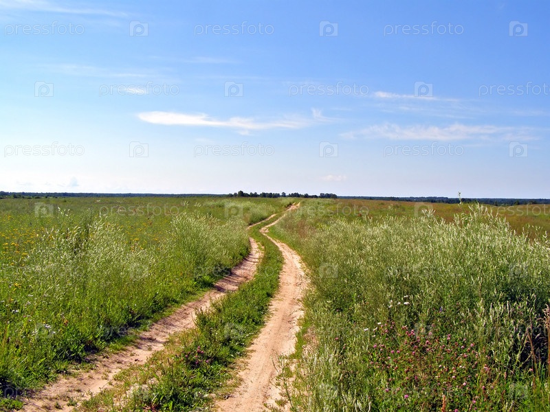 Сельская дорога через поле на фоне неба