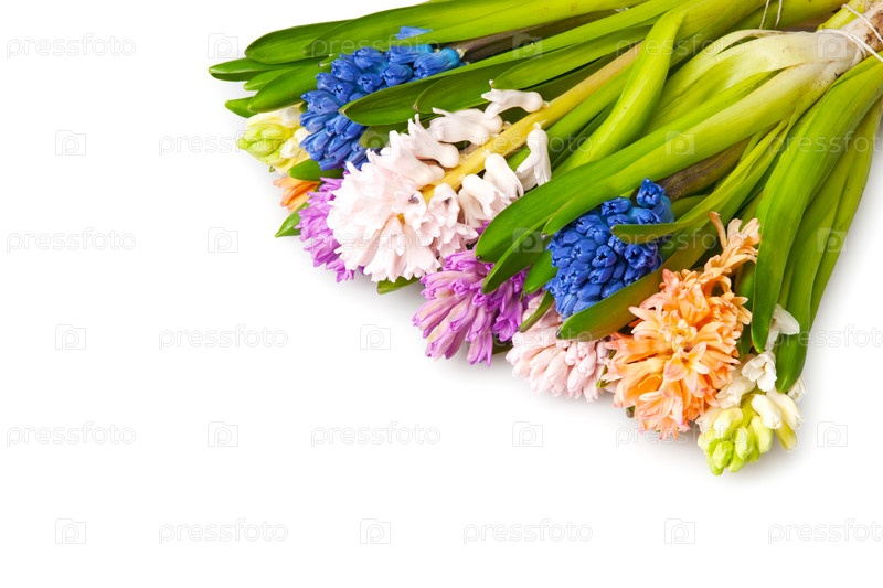 Разноцветный букет из гиацинтов, изолированный на белом фоне
