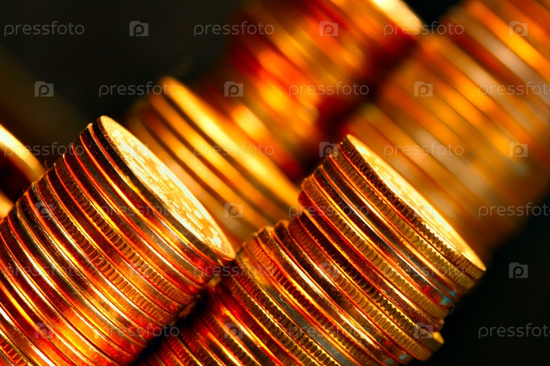 Столбики монет крупным планом