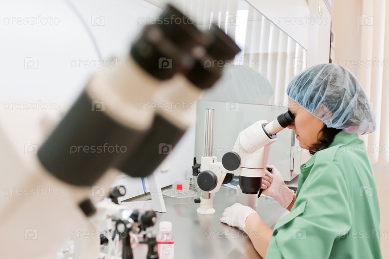 Женщина в форме медицинского работника проводит исследование в лаборатории