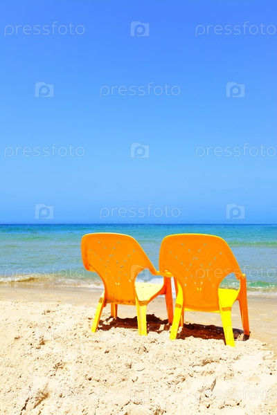 Два пластиковых кресла на пляже