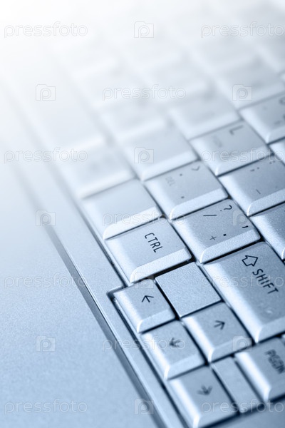 Серебристая компьютерная клавиатура крупным планом