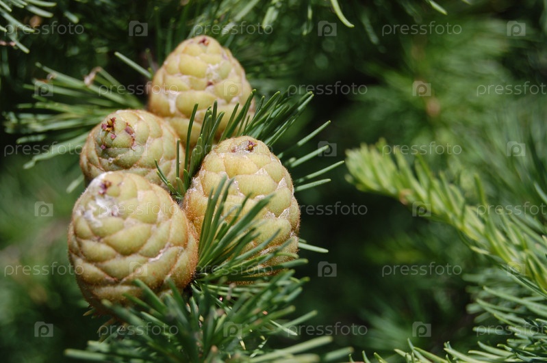 Шишки на ели на белом фоне