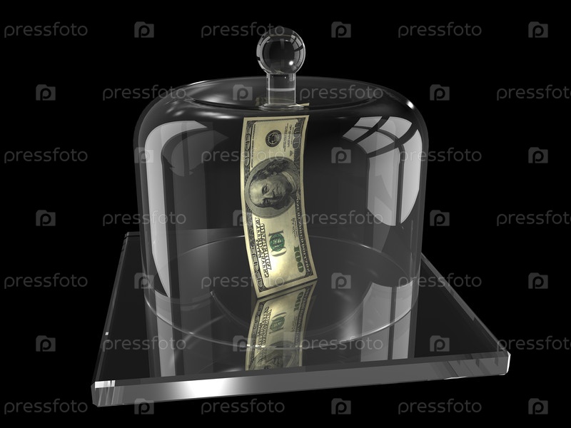 Под стеклянной крышкой находится стодолларовая банкнота