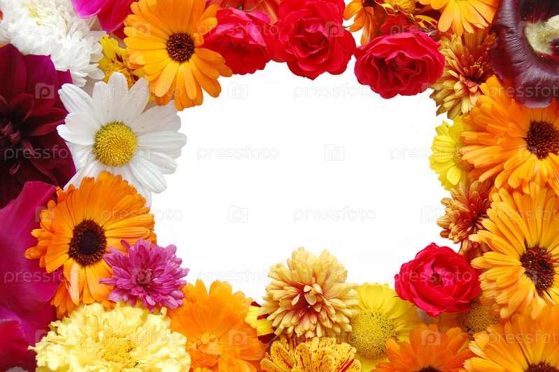 Рамка из цветов на белом фоне