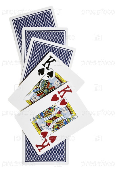 Два короля поверх колоды карт, изолированной на белом фоне
