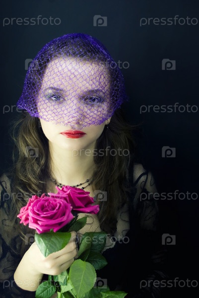 Портрет женщины в завесе с букетом роз