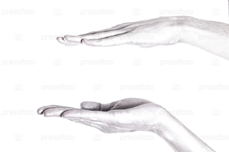 Красивые руки с металлическим отливом и длинными пальцами, изолированные на белом фоне