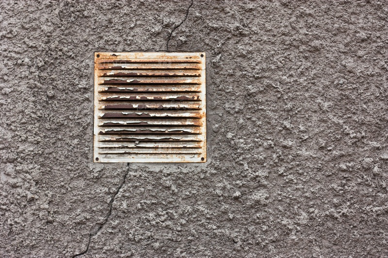 Фрагмент старой цементной стены с вентиляционной решеткой