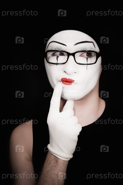 Вдумчивый портрет мима на черном фоне