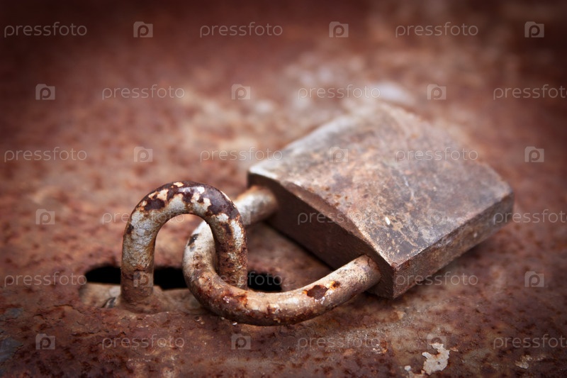 Старый ржавый замок висит на воротах
