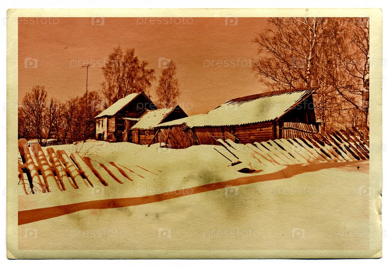 Деревенский дом, изображенный на старой фотографии