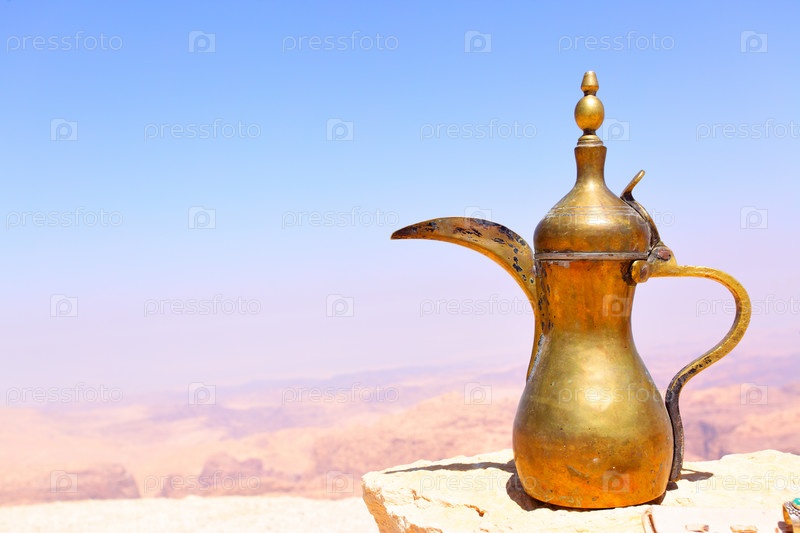 Арабский кофейник на камне в горах Иордании