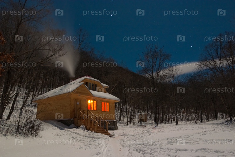 Деревянное шале в зимнем лесу