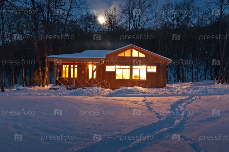 Деревянное шале в зимнем лесу