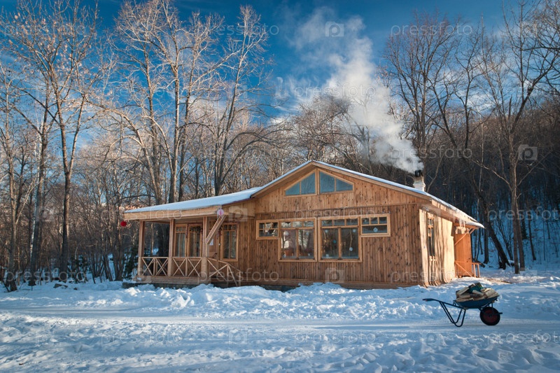 Деревянное шале в зимнем лесу