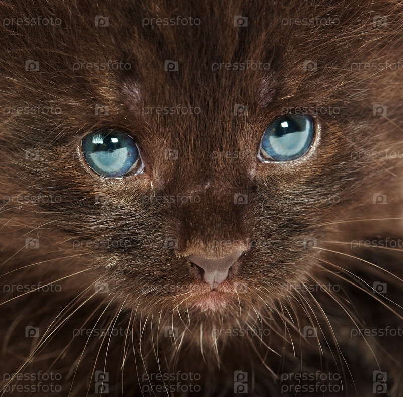 Маленький голубоглазый котенок смотрит в камеру