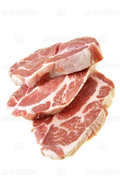 Три куска свинины на белом фоне